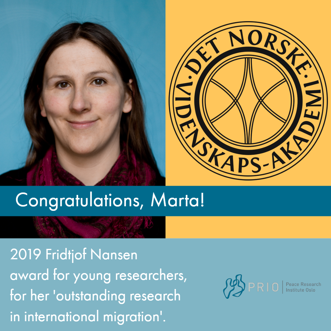 PRIO Research Professor Marta Bivand Erdal has received the prestigious Fridtjof Nansen award for young researchers. The prize is given out yearly by theNorwegian Academy of Science and Letters, and was granted to Erdal for her ‘outstanding research in international migration.'