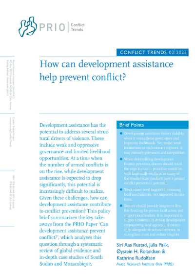 This policy brief outlines how development assistance can help prevent conflict, by addressing structural drivers of violence such as weak governance and lack of livelihoods. It draws on global evidence and case studies from South Sudan and Mozambique.