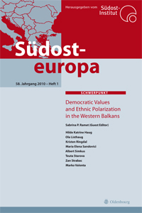 Simkus, Albert; Kristen Ringdal & Ola Listhaug (2010) Was There a Decline in Ethnic Polarization in Macedonia Between 2003 and 2005? Results from a National Panel Analysis, Südosteuropa 58 (1): 67–82.